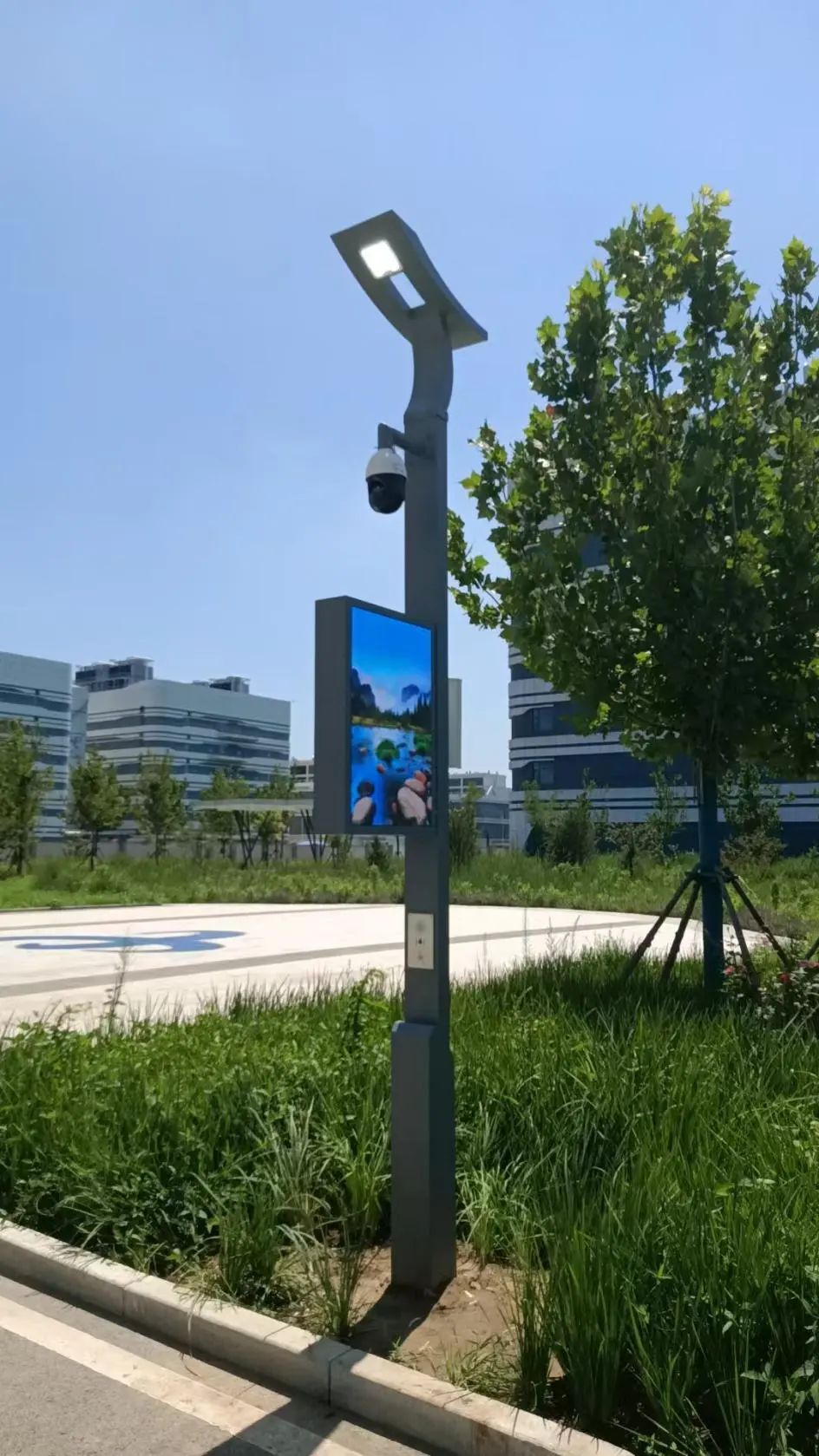 紧急求救功能:集成了一键报警装置,在园区有异常状态下实现一键求助报警,可以实时接到园区管理处,视频查看当时突发状况,而且可以通过智慧e盒来实现AI联动管理,自动联动到智慧灯杆监控摄像头,预设位置,将摄像头镜头转向一键报警位置,更能清晰查看现场实时动态或者其他误操作行为,真正实现智能化联动应用。