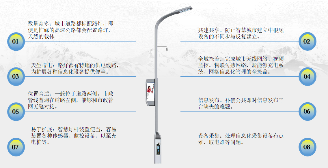 熙枚智慧灯杆综合管理平台是以智慧灯杆为基础,集成了智能照明、视频监控、信息发布、环境监测,新能源汽车充电桩,井盖报警,一键呼叫,停车位管理等各种感知器的新型智能设备,是智慧城市建设的基础,也是互联网的大数据收集及数据分析平台数据的主要来源,提倡共建共赏,节约城市资源,避免反复建设。